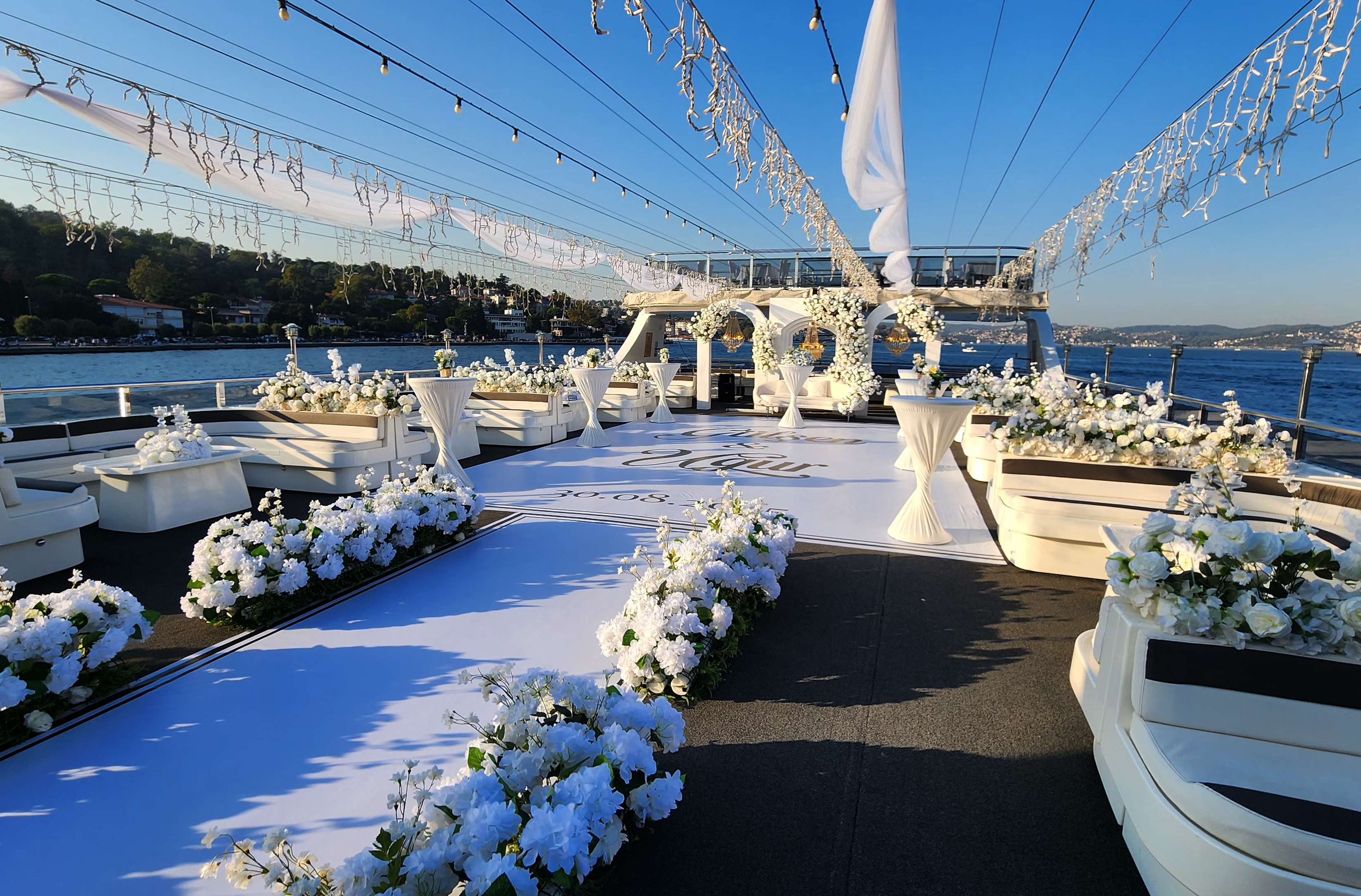 Imagine saying “I do” under the open sky, surrounded by the sparkling waters of the Bosphorus and the dazzling lights of Istanbul. Wedding on a Boat transforms your special day into an unforgettable journey — where romance, elegance, and the rhythm of the sea unite in perfect harmony.
